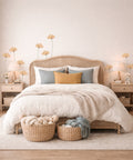 Delicate golden florals add warmth and quiet charm without overwhelming the room. Light, elegant, timeless, and effortlessly refreshing.