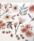 A soft scatter of tiny wildflowers and gentle leaves brings a light, airy feel to the room.